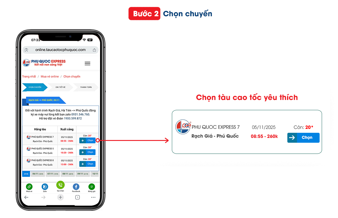 Bước 3: Chi tiết vé tàu Phú Quốc Express