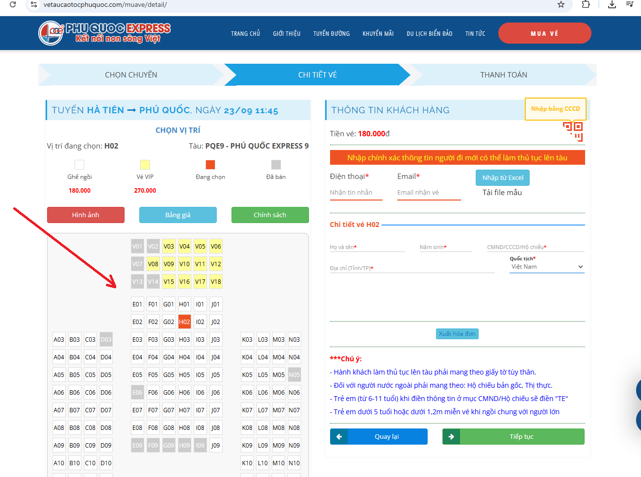 - Tự chọn chỗ ngồi, tự điền thông tin cá nhân.