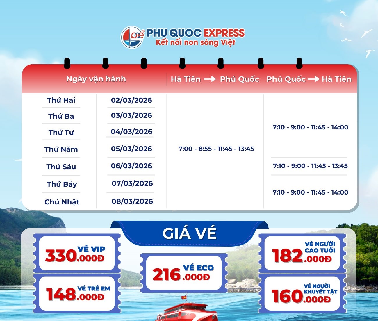 Lịch tàu Phú Quốc Express Hà Tiên - Phú Quốc tháng 3